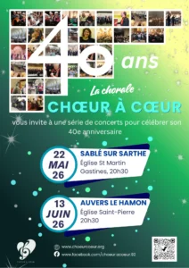Chœur à Cœur c’est une chorale d’une quarantaine de chanteurs amateurs des environs d’Auvers le Hamon dans la Sarthe (72), qui n’aiment rien tant que chanter. La chorale se réunit chaque semaine pour chanter un répertoire varié, comprenant de la musique du monde, sacrée, classique… Mais encore bien d’autres … Des plus doux aux plus entraînants. En français, anglais, italien, zoulou…
