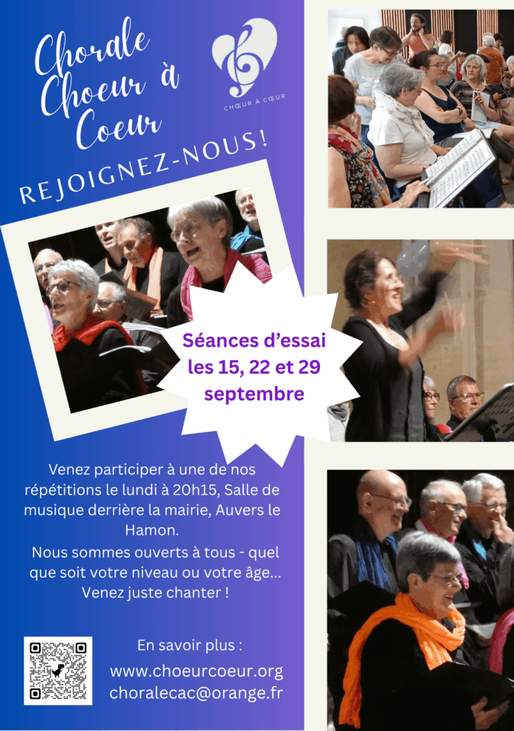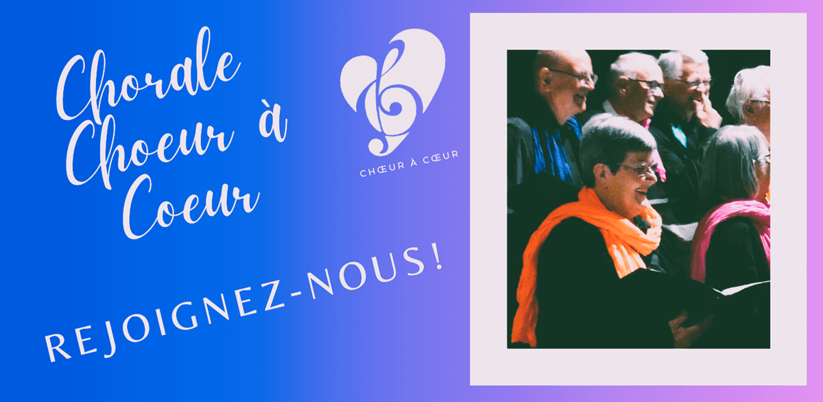 Vous aimez chanter, venez nous rejoindre dans une ambiance dynamique et chaleureuse. Aucune expérience chorale exigée seulement le plaisir de chanter ensemble dans la simplicité, la convivialité et de progresser dans la technique vocale.